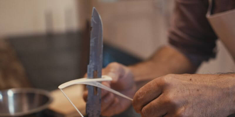 Die Därme werden in einem mehrtägigen Prozess immer wieder in Handarbeit vom Schleim gesäubert.