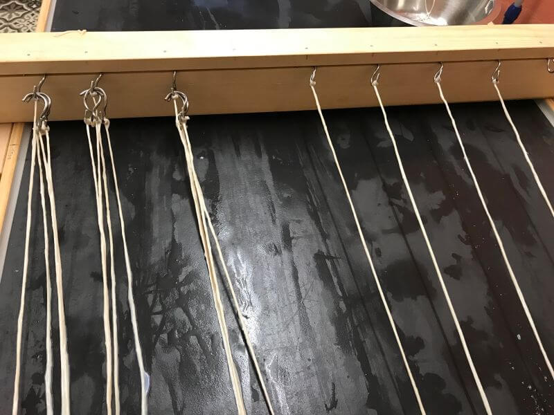 Die angeschlauften Darmbändchen liegen zum Verdrillen bereit.
